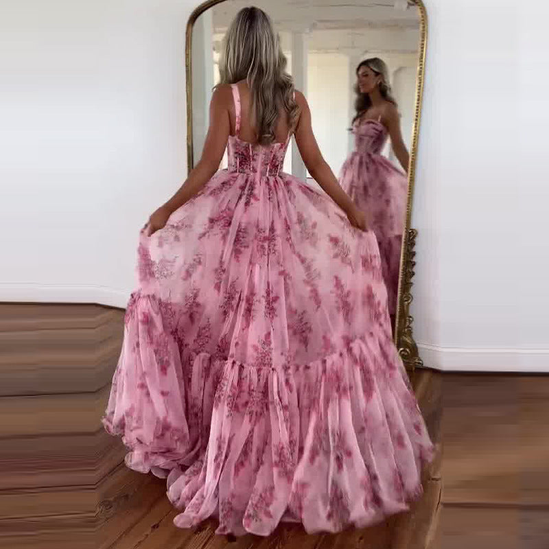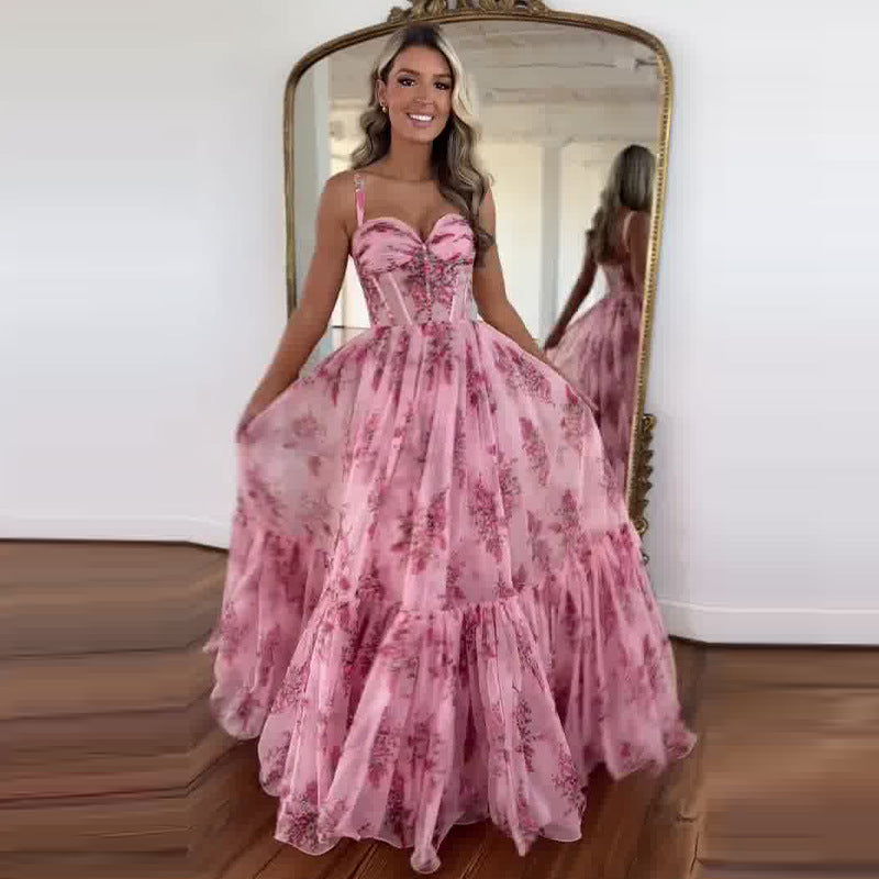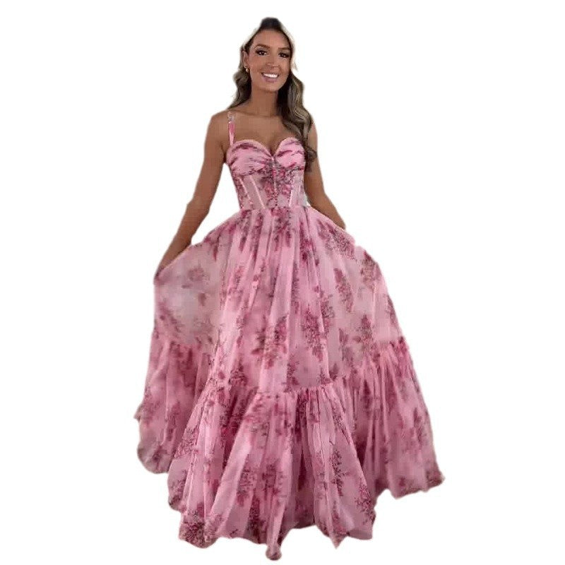 Cinched Waist Slim-fit Fashion Printed Large Swing Dress