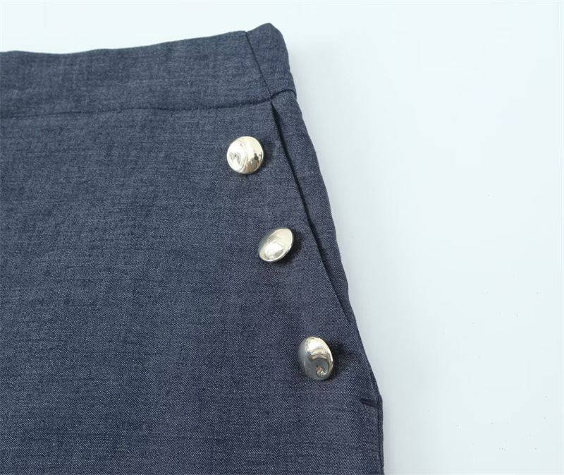 New Spring And Autumn Linen Button Decoration Wide Leg Pants