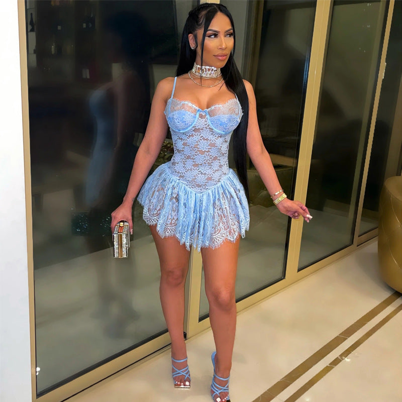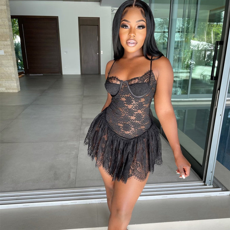 Sexy Bandeau Strap Backless Hollow Dress Women